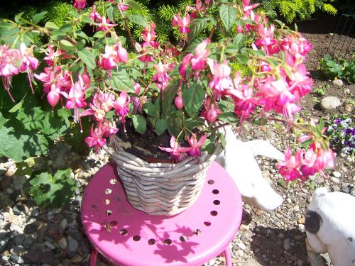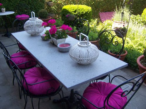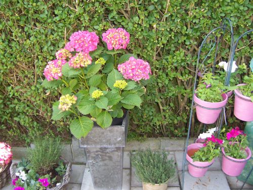 Mon jardin pour rèver une vie dans les tons de rose,nuances de rose cyclamen, le rose vif des pivoines, le rose vif des pois de senteur , le rouge éclatant d'un pot de géranium, les oranges animés d'une pointe de bleu et les nuances plus soutenues des violettes et des pensées , et le bleu lavande des hortensias !!!